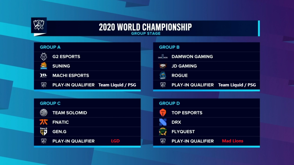 En admettant que les favoris du Play-in passent, ce sont les groupes pour les Worlds 2020 ;)